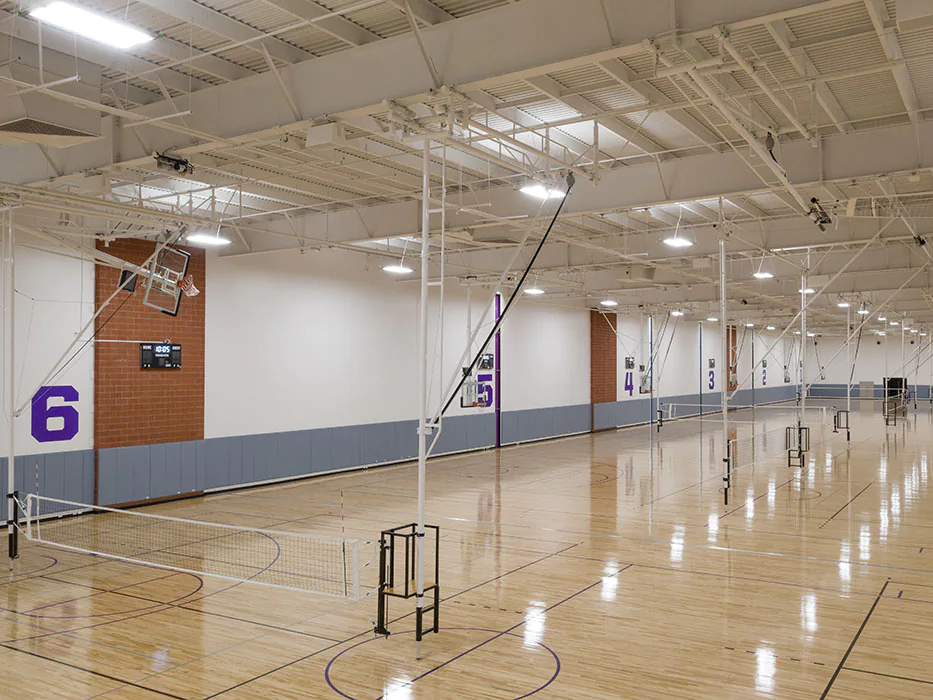 Draper Basketball Backstops, Overhead Volleyball Systems, Wall Pads, and Smart Gym control system installed at Grand Canyon University, Phoenix, AZ.